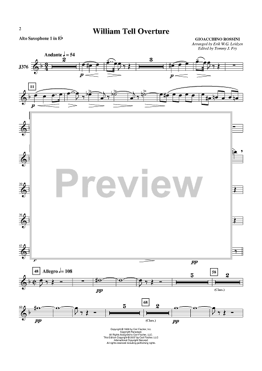 Digital Sheet Music for William Tell Overture - Alto Sax 1 by Gioachino Rossini, Erik Leidzen scored for Concert Band; id:407513