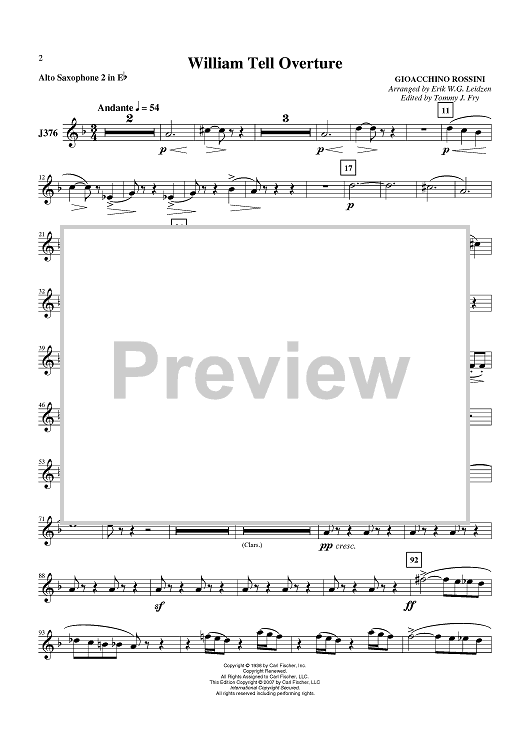 Digital Sheet Music for William Tell Overture - Alto Sax 2 by Gioachino Rossini, Erik Leidzen scored for Concert Band; id:407514