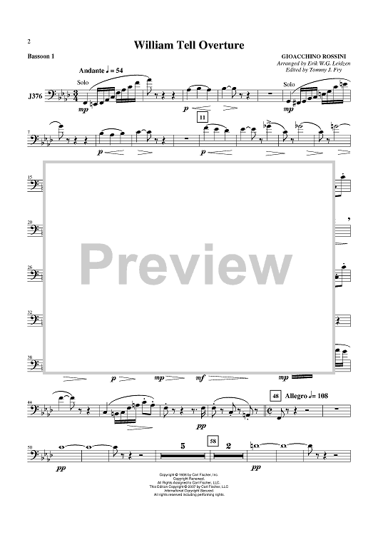 Digital Sheet Music for William Tell Overture - Bassoon 1 by Gioachino Rossini, Erik Leidzen scored for Concert Band; id:407511