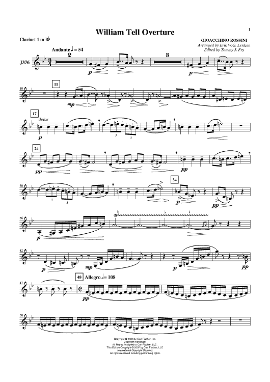 Digital Sheet Music for William Tell Overture - Clarinet 1 in B-flat by Gioachino Rossini, Erik Leidzen scored for Concert Band; id:407507