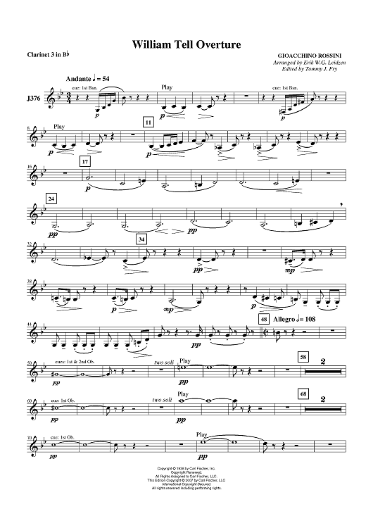 Digital Sheet Music for William Tell Overture - Clarinet 3 in B-flat by Gioachino Rossini, Erik Leidzen scored for Concert Band; id:407509