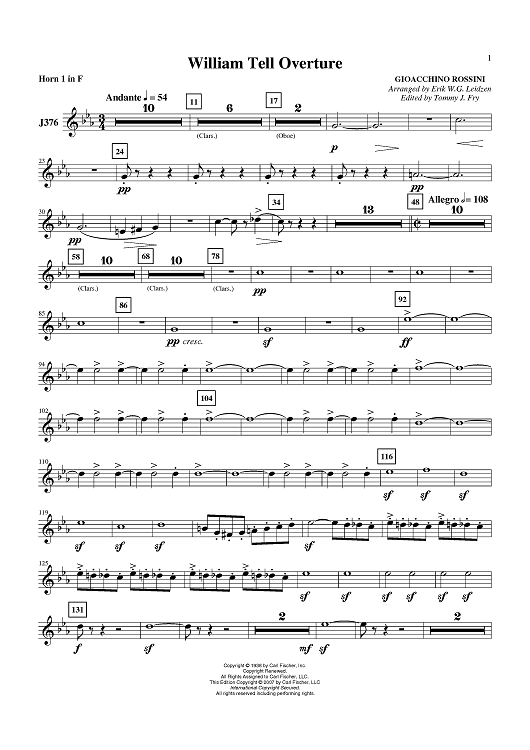 Digital Sheet Music for William Tell Overture - Horn 1 in F by Gioachino Rossini, Erik Leidzen scored for Concert Band; id:407521