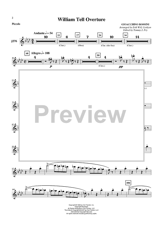 "William Tell Overture - Piccolo" Sheet Music by Gioachino Rossini