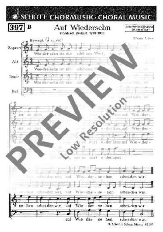 Digital Sheet Music for Willkomm / Auf Wiedersehn - Choral Score by Hans Lang scored for Mixed Choir (satb); id:479272