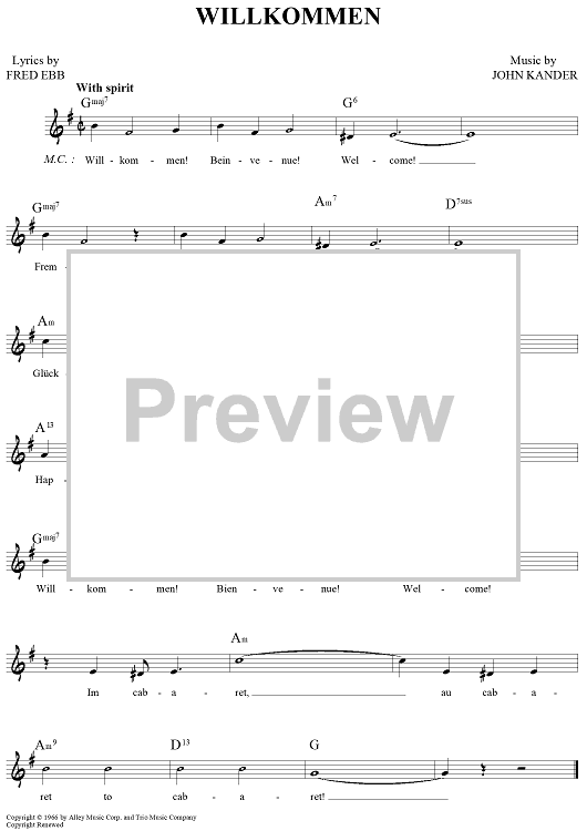 Digital Sheet Music for Willkommen by John Kander, Fred Ebb scored for Lead Sheet; id:441549