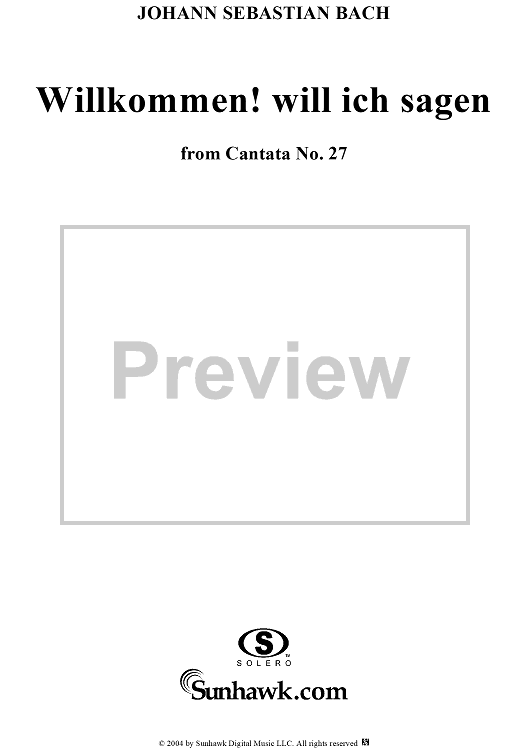 Digital Sheet Music for "Willkommen! will ich sagen," Aria, No. 3 from Cantata No. 27: Wer weiss, wie nahe mir mein Ende, BWV27 - English Horn by Johann Sebastian Bach scored for Alto, English Horn and Piano or Organ; id:303627