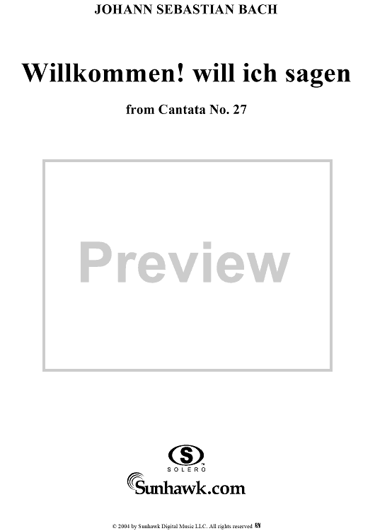 ""Willkommen! will ich sagen," Aria, No. 3 from Cantata No. 27: Wer weiss, wie nahe mir mein Ende, BWV27 - Piano Score" Sheet Music by Johann Sebastian Bach