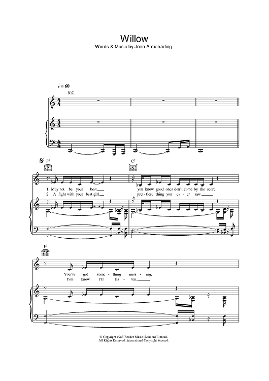 Digital Sheet Music for Willow by Joan Armatrading scored for Piano/Vocal/Chords; id:388351