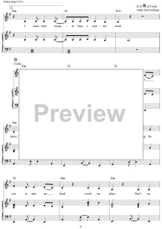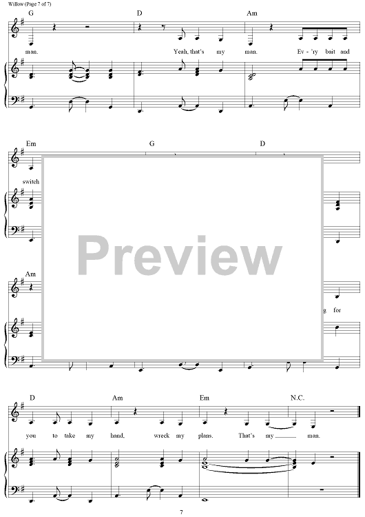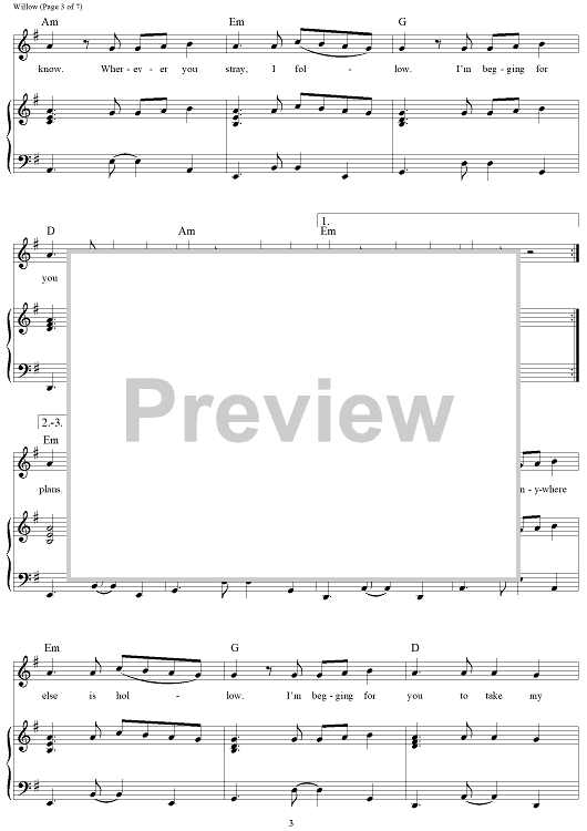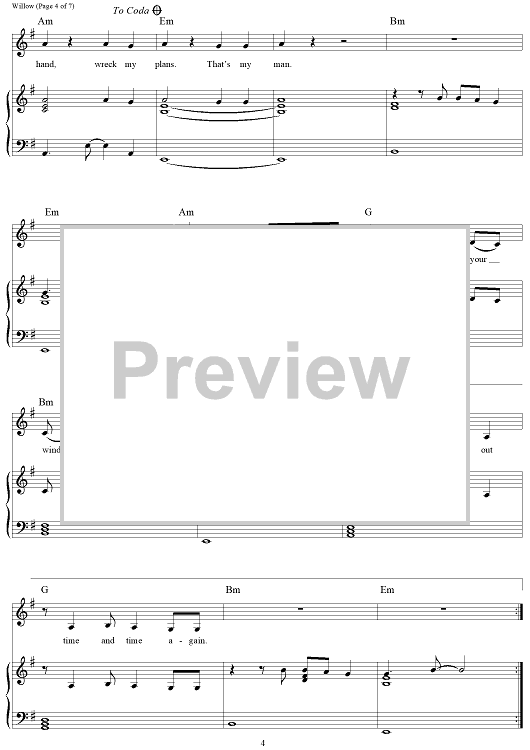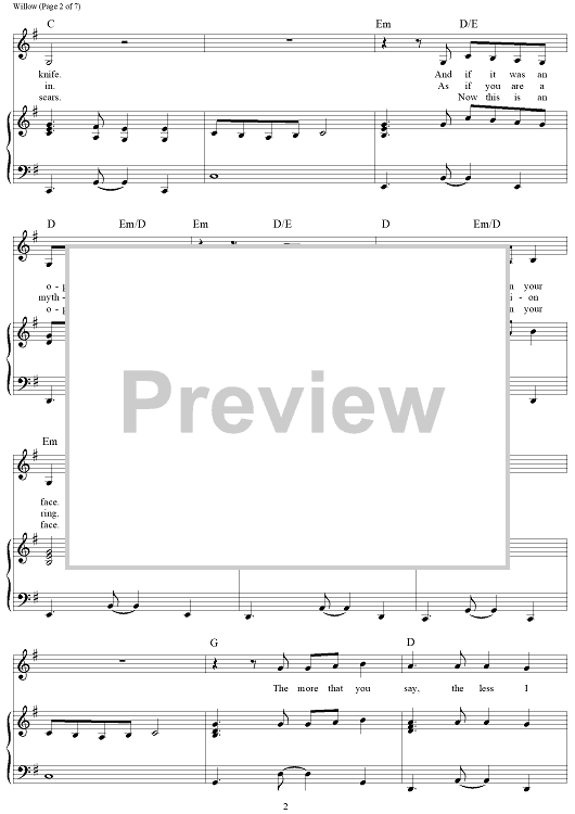 Digital Sheet Music for Willow by Taylor Swift, Aaron Dessner scored for Piano/Vocal/Chords; id:468764