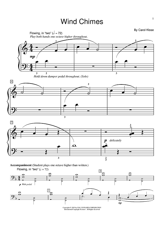 Digital Sheet Music for Wind Chimes by Carol Klose scored for Piano; id:382060