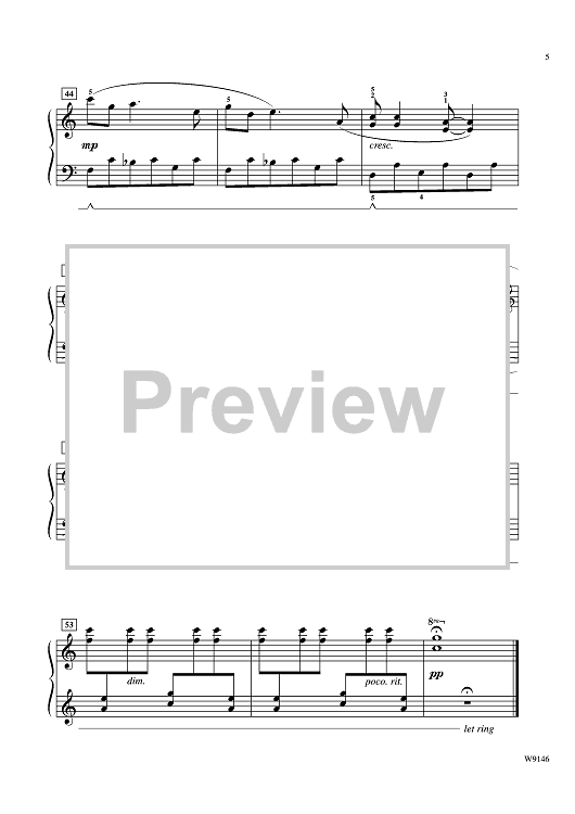 Fresh, contemporary-sounding piece features a hypnotic left-hand ostinato, delicate textures, changing meter, singing right-hand melody and legato pedaling. This charming solo offers modern harmonies and repeated left-hand patterns which make it easy to play and memorize.