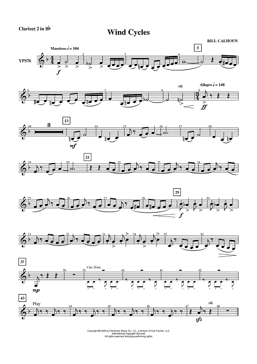 "Wind Cycles - Clarinet 2 in B-flat" Sheet Music by Bill Calhoun