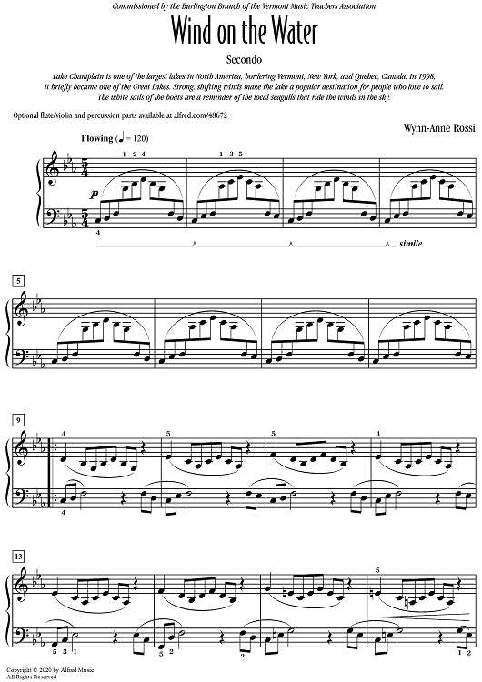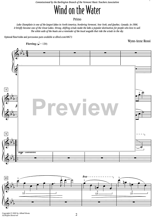 Digital Sheet Music for Wind on the Water by Wynn-Anne Rossi scored for 1 Piano, 4 Hands; id:469722