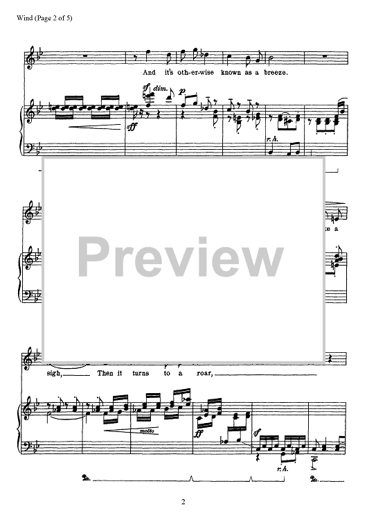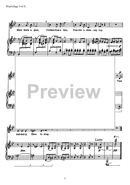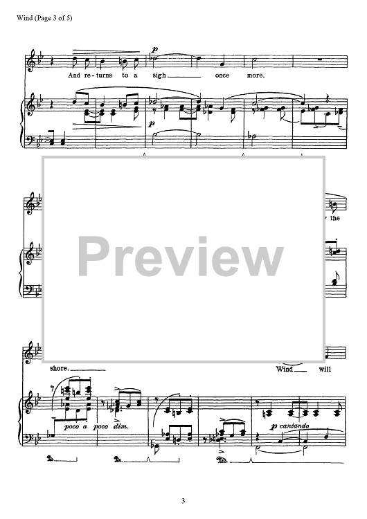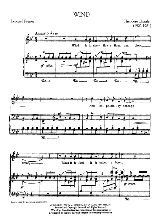 Digital Sheet Music for Wind by Theodore Chanler, Leonard Feeney scored for Piano/Vocal; id:466759