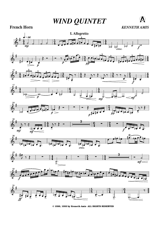 "Wind Quintet - Horn in F" Sheet Music by Kenneth Amis