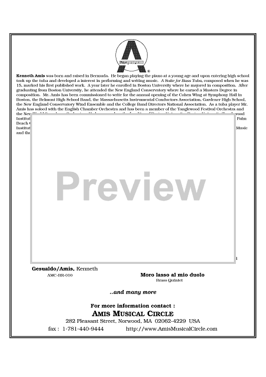 "Wind Quintet - Introductory Notes" Sheet Music by Kenneth Amis