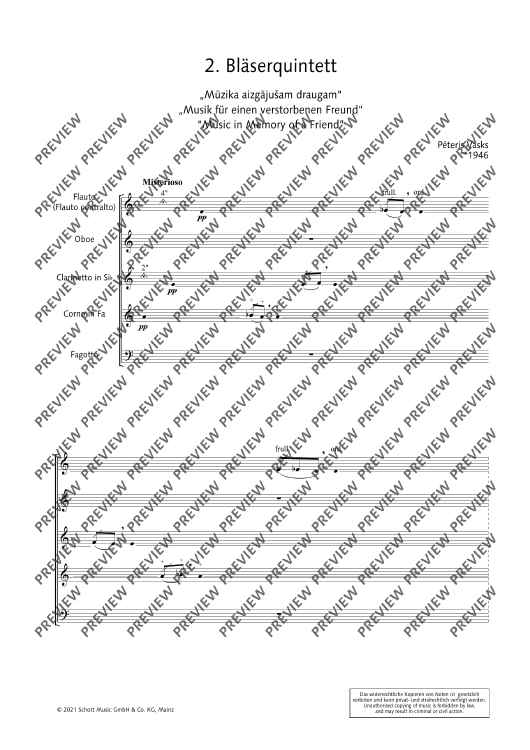 Digital Sheet Music for Wind Quintet No. 2 - Score and Parts by Peteris Vasks scored for Flute, Oboe, Clarinet, Horn And Bassoon; id:496719