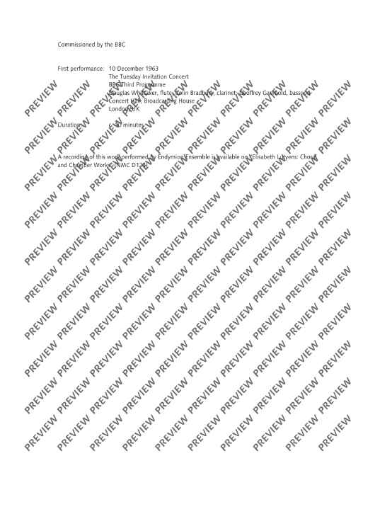 Digital Sheet Music for Wind Trio - Score and Parts by Elisabeth Lutyens scored for Flute, Clarinet And Bassoon; id:498572