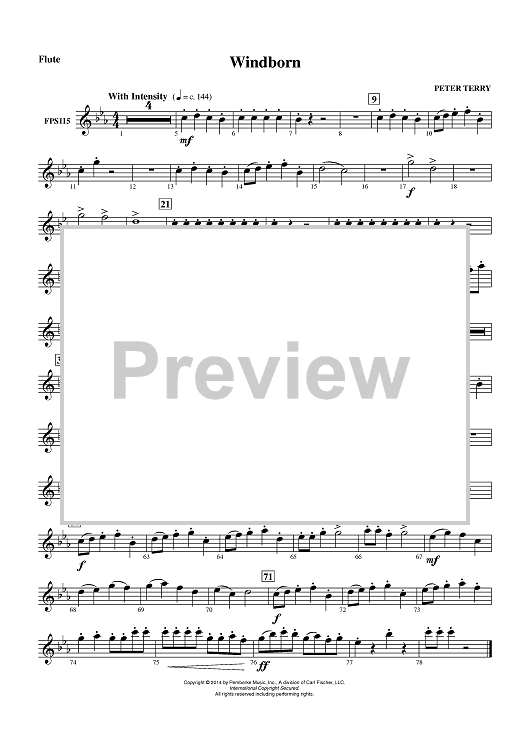 Digital Sheet Music for Windborn - Flute by Peter Terry scored for Concert Band; id:451300