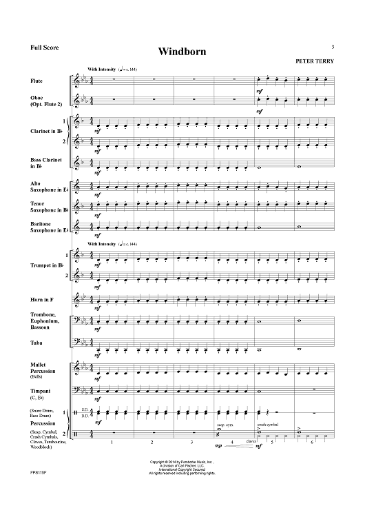 Digital Sheet Music for Windborn - Score by Peter Terry scored for Concert Band; id:451299
