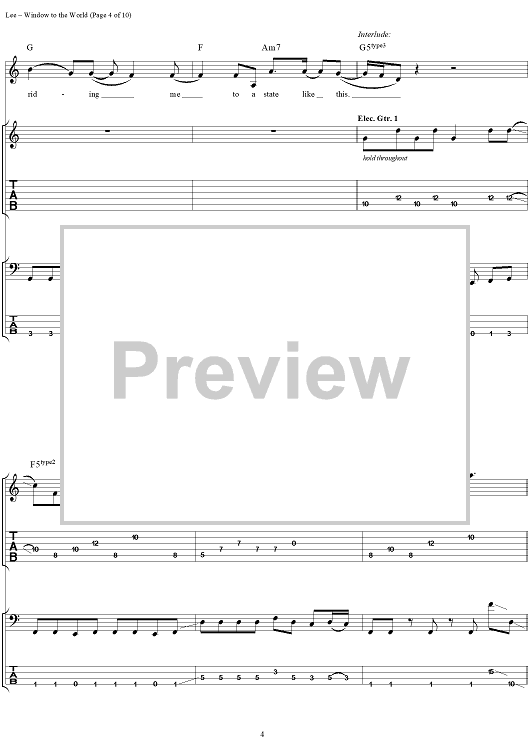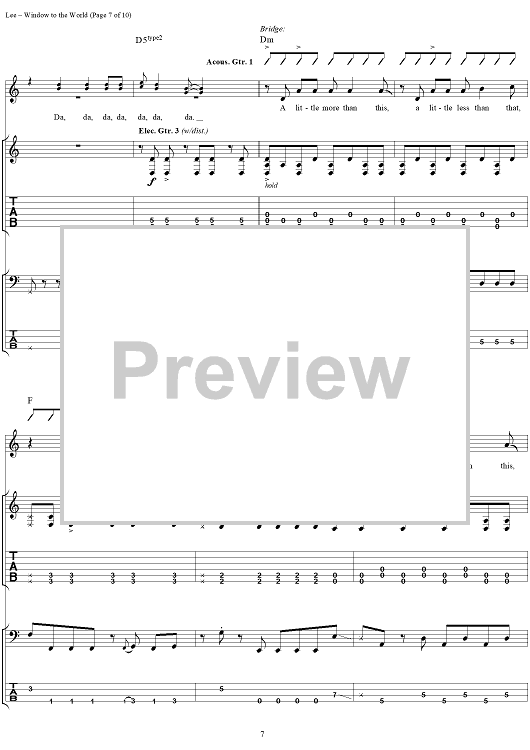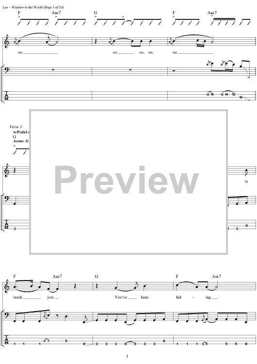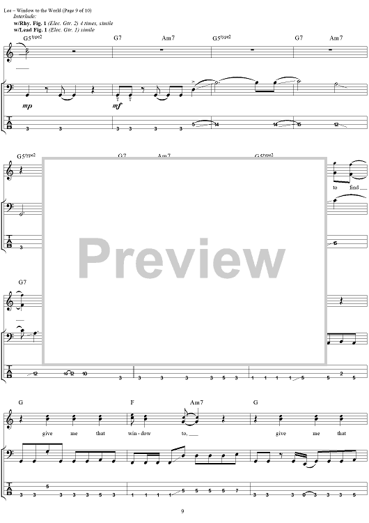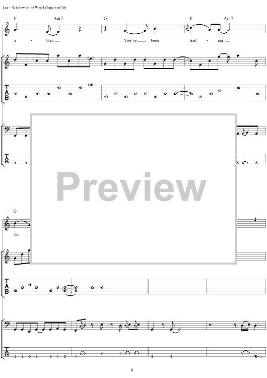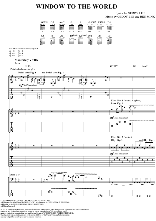 Digital Sheet Music for Window to the World by Geddy Lee, Ben Mink scored for Guitar Tab/Bass/Vocal; id:285297