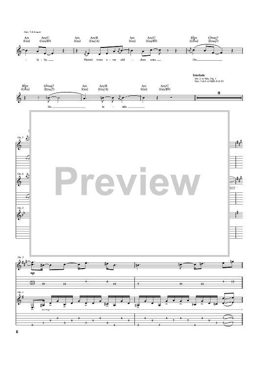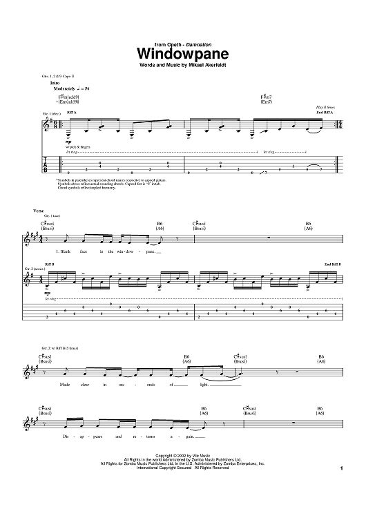 Digital Sheet Music for Windowpane by Mikael Akerfeldt, Opeth scored for Guitar Tab; id:397962