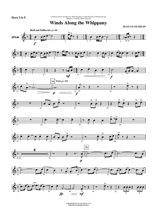 "Winds Along the Whippany - Horn 3 in F" Sheet Music by Sean O'Loughlin