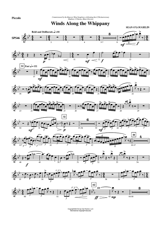 "Winds Along the Whippany - Piccolo" Sheet Music by Sean O'Loughlin