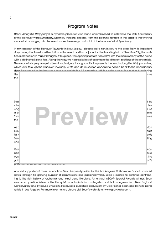 "Winds Along the Whippany - Score" Sheet Music by Sean O'Loughlin