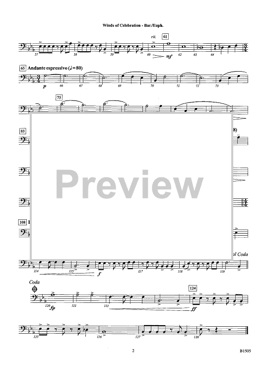 Digital Sheet Music for Winds of Celebration - Baritone/Euphonium by Tyler S. Grant scored for Concert Band; id:439784