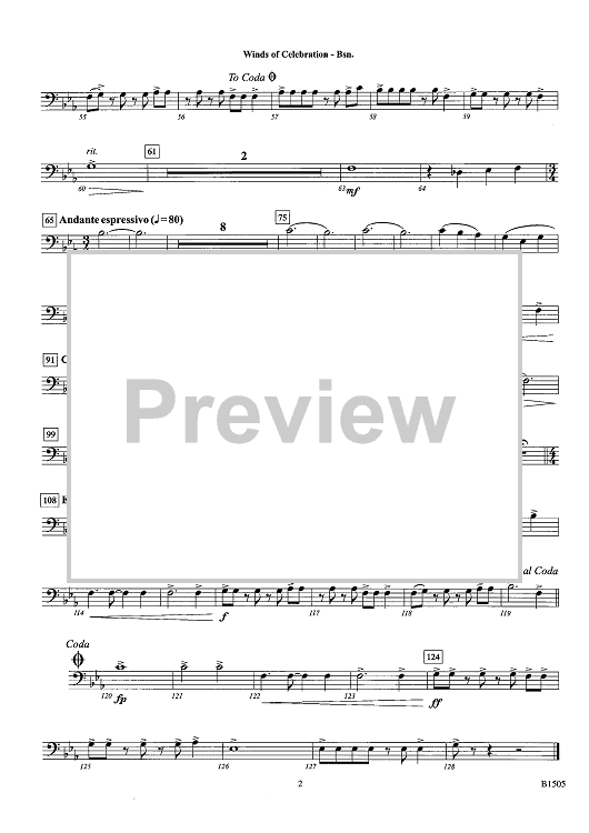 Digital Sheet Music for Winds of Celebration - Bassoon by Tyler S. Grant scored for Concert Band; id:439771