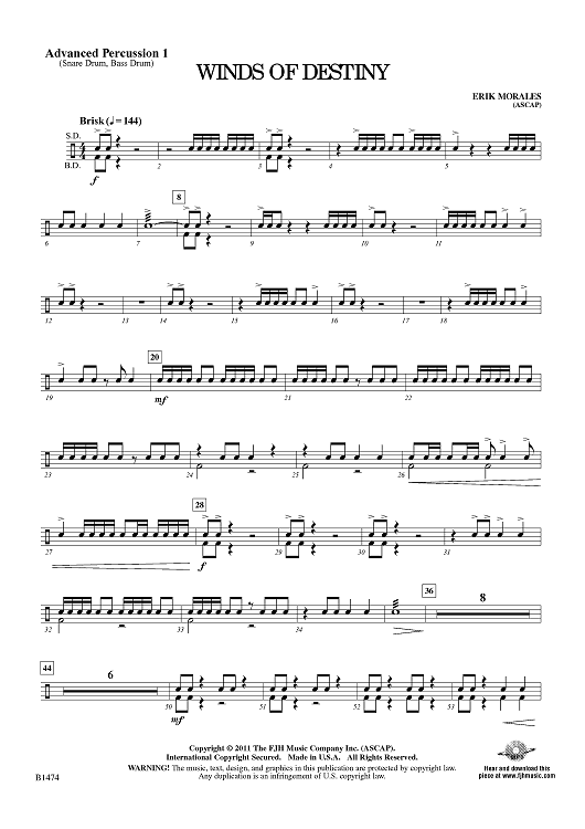 Digital Sheet Music for Winds of Destiny - Advanced Percussion 1 by Erik Morales scored for Concert Band; id:425784