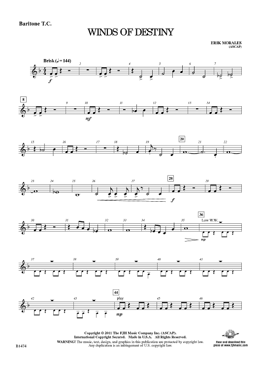 Digital Sheet Music for Winds of Destiny - Baritone TC by Erik Morales scored for Concert Band; id:425778
