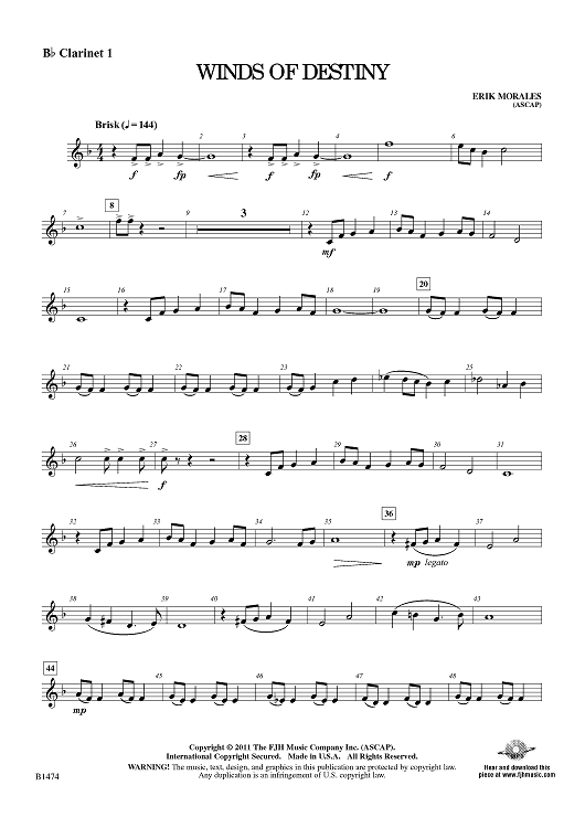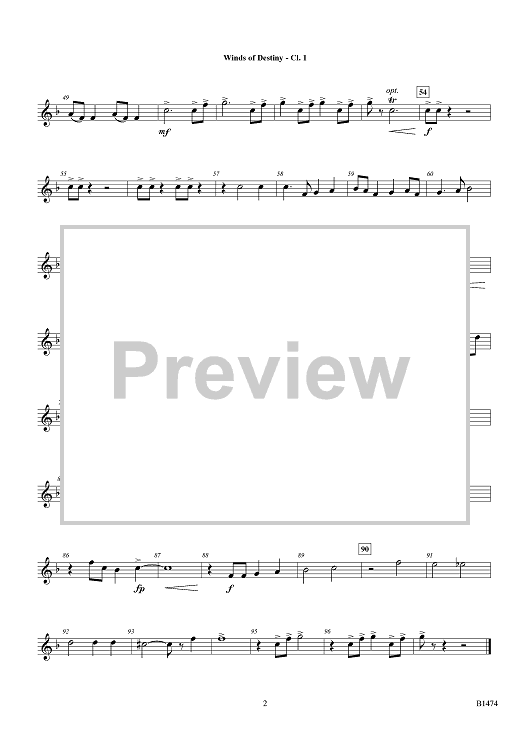 Digital Sheet Music for Winds of Destiny - Bb Clarinet 1 by Erik Morales scored for Concert Band; id:425767