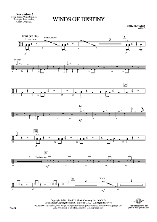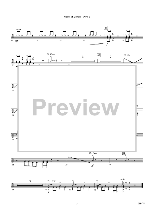 Digital Sheet Music for Winds of Destiny - Percussion 2 by Erik Morales scored for Concert Band; id:425785