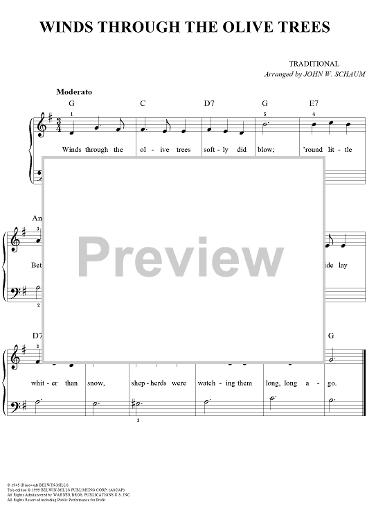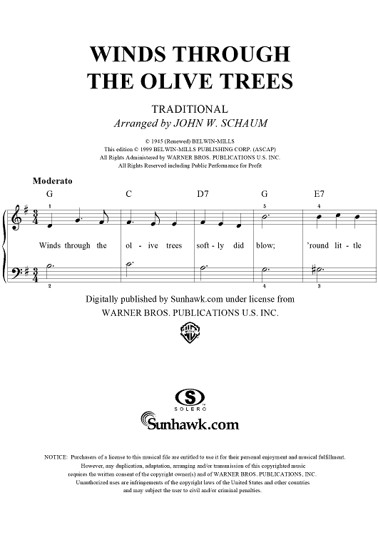 Digital Sheet Music for Winds Through The Olive Trees by John W. Schaum, Traditional scored for Easy Piano/Vocal; id:241956