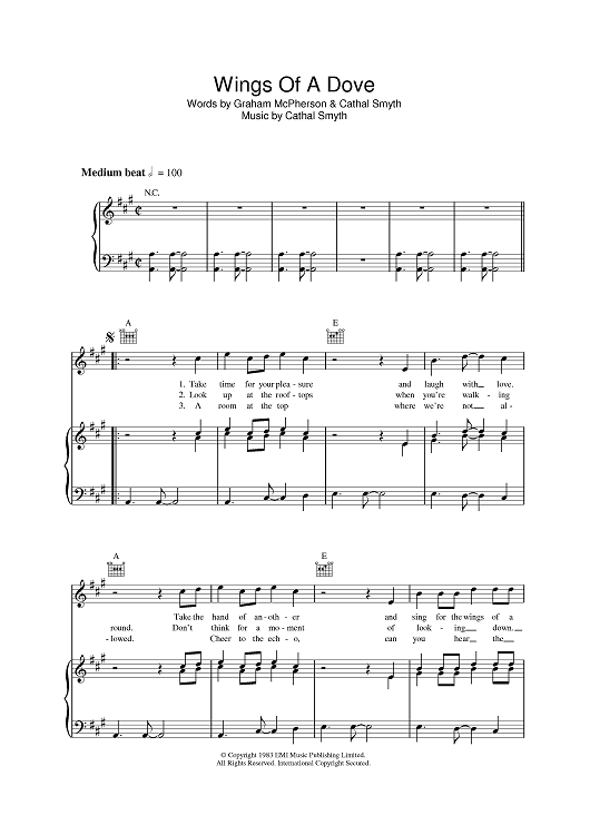 Digital Sheet Music for Wings Of A Dove by Madness, Graham McPherson, Cathal Smyth scored for Piano/Vocal/Chords; id:401422
