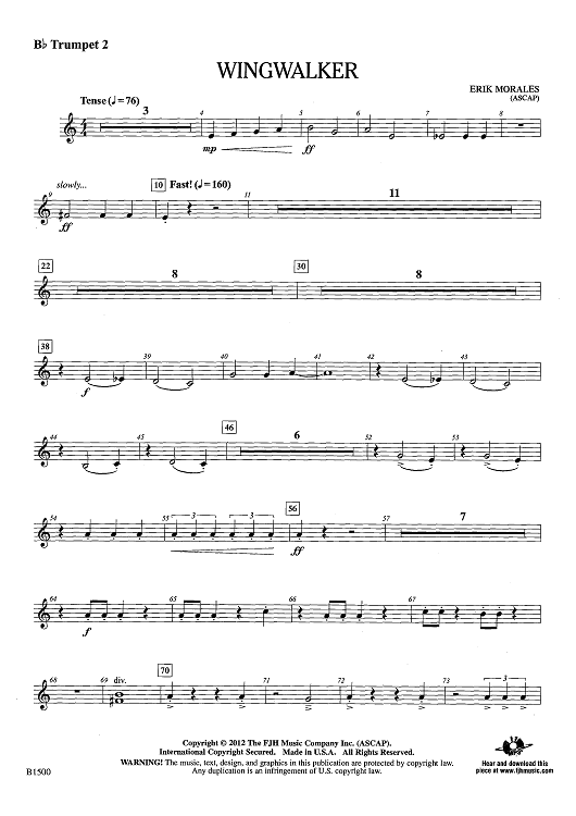 Digital Sheet Music for Wingwalker - Bb Trumpet 2 by Erik Morales scored for Concert Band; id:438643