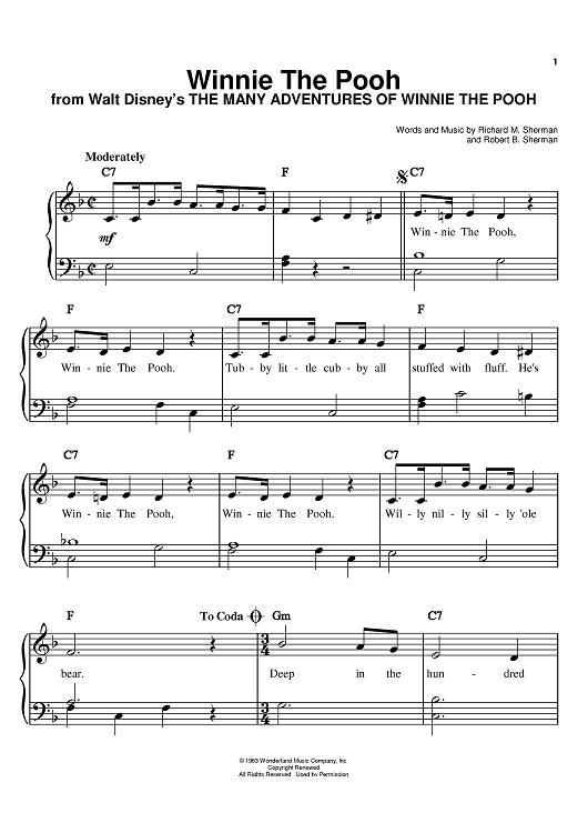 Digital Sheet Music for Winnie The Pooh by Richard M. Sherman, Robert B. Sherman scored for Easy Piano; id:368404