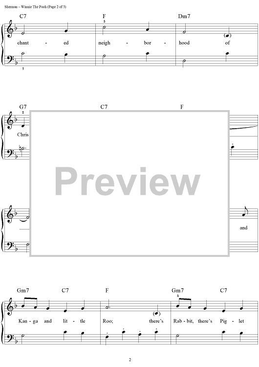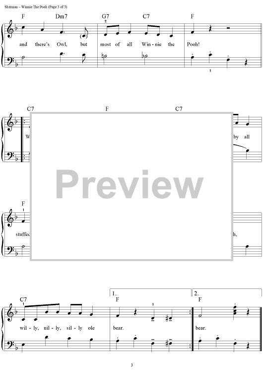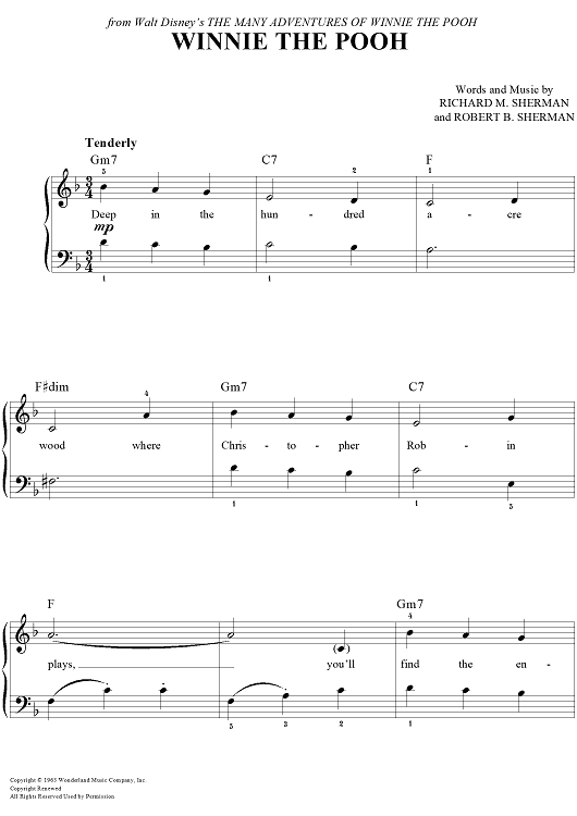 Digital Sheet Music for Winnie The Pooh by Richard M. Sherman, Robert B. Sherman scored for Easy Piano/Vocal/Chords; id:453228