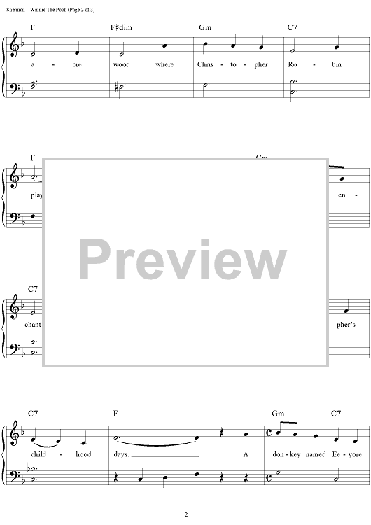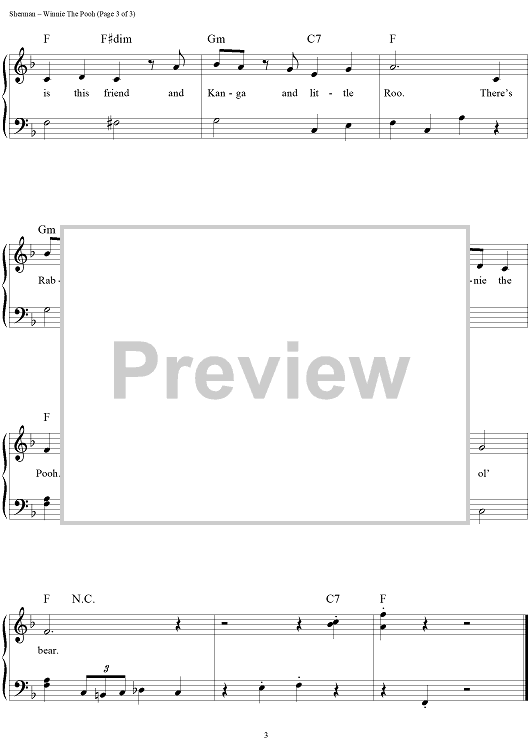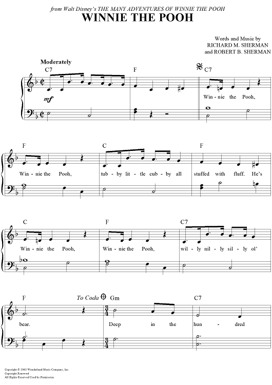 Digital Sheet Music for Winnie The Pooh by Richard M. Sherman, Robert B. Sherman scored for Easy Piano/Vocal/Chords; id:457540