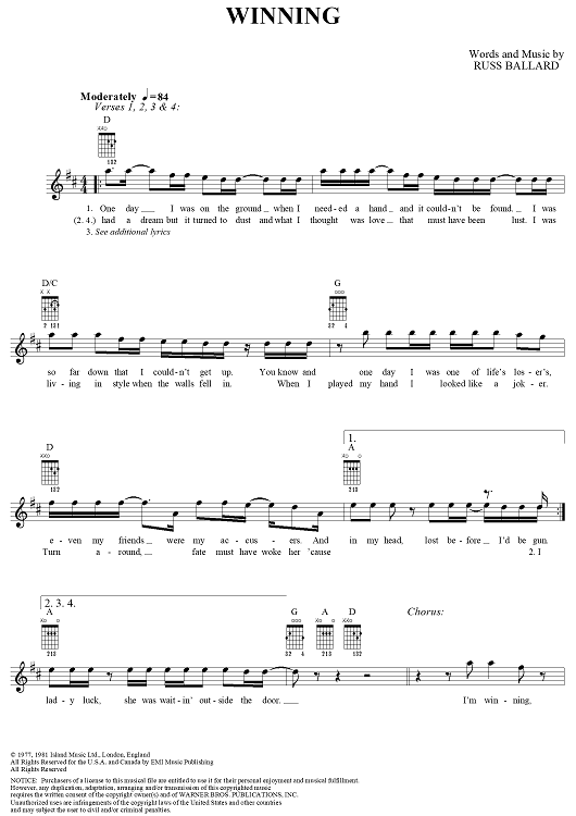 Digital Sheet Music for Winning by Carlos Santana, Russ Ballard scored for Lead Sheet; id:283262