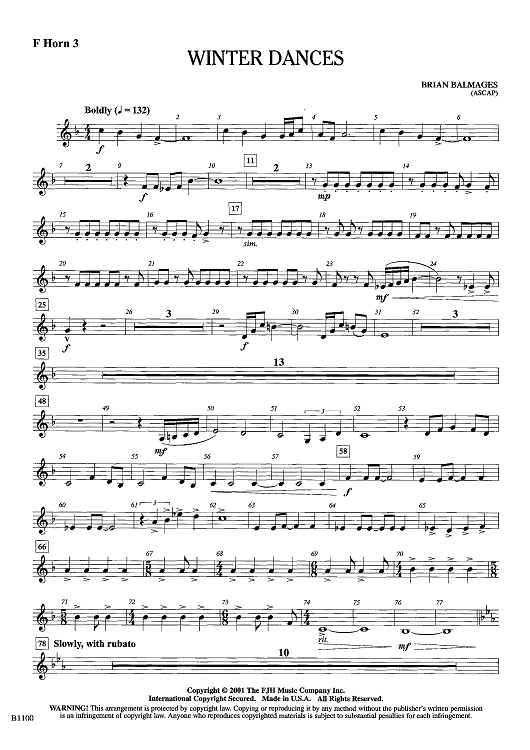 "Winter Dances - F Horn 3" Sheet Music by Brian Balmages