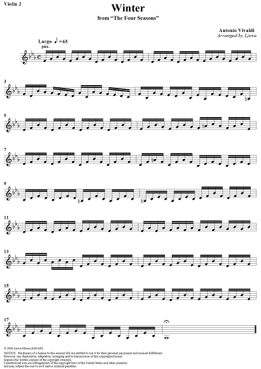 Digital Sheet Music for Winter from "The Four Seasons" - Violin 2 by , Antonio Vivaldi, Ljova scored for String Quartet; id:320750