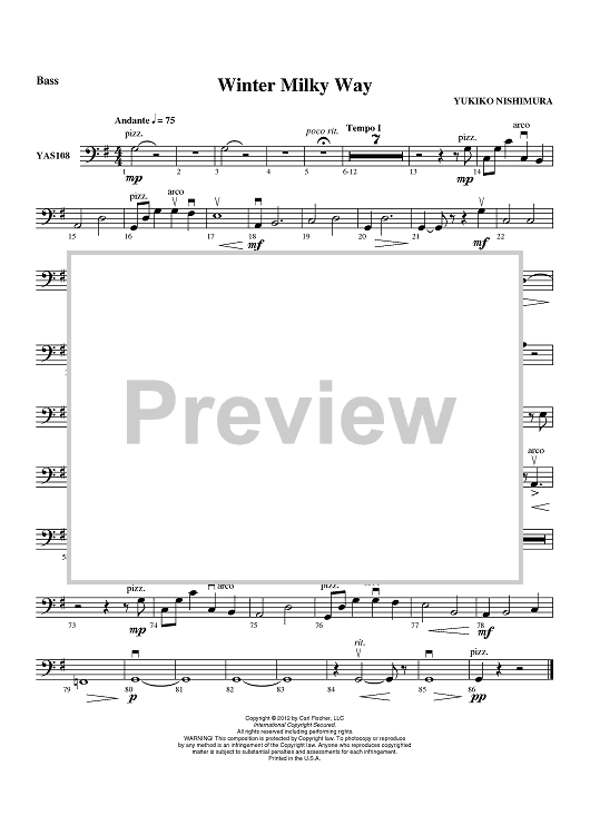 "Winter Milky Way - Bass" Sheet Music by Yukiko Nishimura