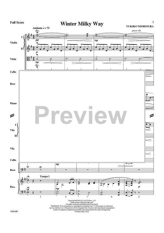 Digital Sheet Music for Winter Milky Way - Score by Yukiko Nishimura scored for String Orchestra; id:431851