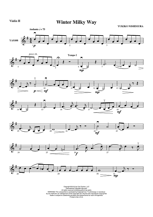 "Winter Milky Way - Violin 2" Sheet Music by Yukiko Nishimura