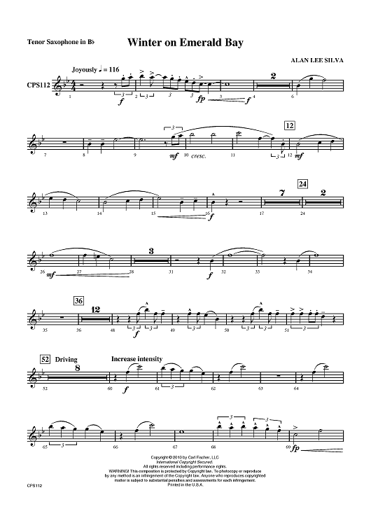 "Winter on Emerald Bay - Tenor Sax" Sheet Music by Alan Lee Silva