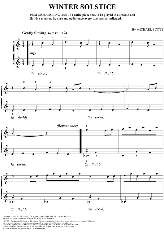Digital Sheet Music for Winter Solstice by Michael Scott scored for Easy Piano; id:257550