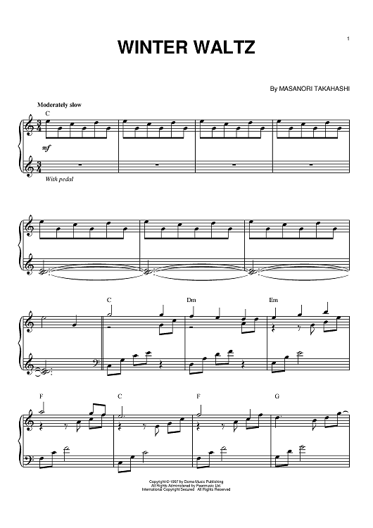 Digital Sheet Music for Winter Waltz by Kitaro, Masanori Takahashi scored for Piano; id:381653